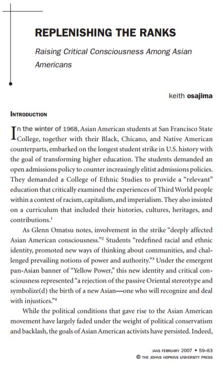 - Since I need sources that cover California in the late 1960s I begin with the one digitized California newspaper we have, the LA Times. My initial search in the Los Angeles Times for: "asian american political alliance" found nothing so I decided to search instead for articles on the SF State College Strike.